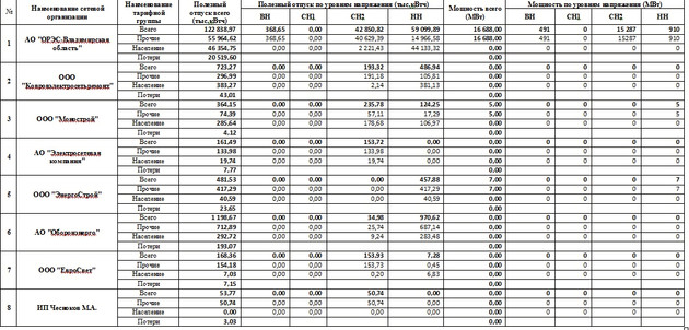 Полезный отпуск электрической энергии из электрических сетей сетевых организаций указан суммарно по точкам поставки, соответствующим зоне деятельности АО «Владимирские коммунальные системы» как гарантирующего поставщика и как независимой энергосбытовой организации.