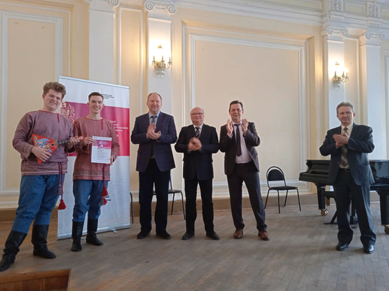 Из ДМШ при колледже в конкурсе также участвовали два юных балалаечника - ученики Игоря Безотосного. Зуйков Дмитрий стал лауреатом 3 степени, Александр Лебедев - лауреатом первой степени.