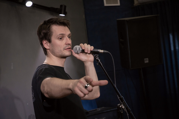 «Виталий, давай живее, ладно?» - кивает мой собеседник коллеге. Тот кивает в ответ и начинает располагаться за установкой. А я тем временем «цепляюсь» к словам Саши: «Насчет «в каждом хорошее»... Поспорила бы. Плохого тоже хватает». Он говорит так: «Хватает. Но нам не обязательно в этом участвовать, верно? Не нужно рвать друг другу глотки, как бы сложно ни было. Иногда стоит уйти в другое пространство, где правила более... человечные, что ли... Лично мне выступления нужны как эмоциональное высказывание. Для меня сцена это возможность всегда поговорить о чем-то важном не будничным языком».