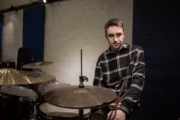 В студию в этот момент буквально влетает ударник Виталий Пискарев, до прихода которого я успела осуществить давнюю мечту усесться за ударную установку. Правда, побарабанить и постучать по тарелкам удалось лишь руками. Палочки, как выяснилось, у ударников ценнейшая вещь, которую они никому в руки не дают. При этом вещь строго индивидуальная - «как зубная щетка», пояснил мне Александр.