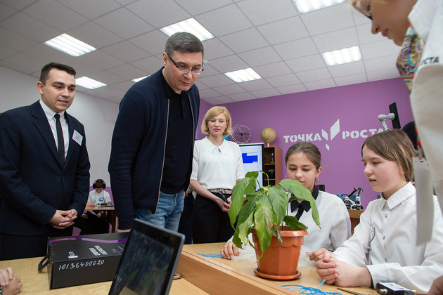 В рамках федерального проекта «Современная школа» национального проекта «Образование» 1 сентября 2021 года в карабановской школе №9 открыт центр естественно-научной и технологической направленностей «Точка Роста». Участие в региональном проекте «Успех каждого ребенка» позволило отремонтировать спортивный зал. Александр Авдеев отметил творческий подход к оформлению школьных кабинетов.