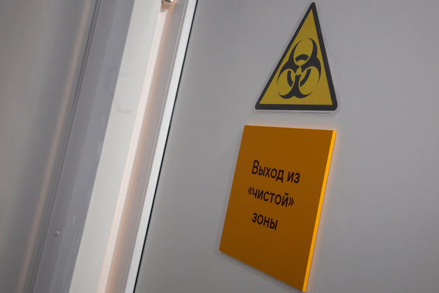 Между «заразной» и «чистой» зонами расположен санпропускник с раковиной и душем (если произойдет авария с микроорганизами, необходимо снять с себя одежду и помыться). На двери – знак биологической опасности. При входе необходимо вытереть ноги об дезинфекционный коврик. Кстати, система вентиляции для каждой из зон автономная, чтобы воздух из «заразной» никак не попадал в «чистую» и наоборот.