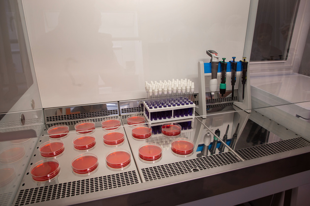 В кабинете приема и регистрации проб две двери – для сотрудников и передачи образцов. Специалист регистрирует пробу, кодирует, определяет показатели в зависимости от вида продукта и отправляет в комнату для посева. Как и «средоварочной» там установлены два бокса микробиологической безопасности. Среди аппаратуры еще имеются весы и гомогенизаторы, чтобы равномерно перемешать пробу с питательной средой. Дальше – самое интересное – непосредственно исследование. В этой комнате располагаются холодильники, несколько термостатов, боксы микробиологической безопасности и другие.