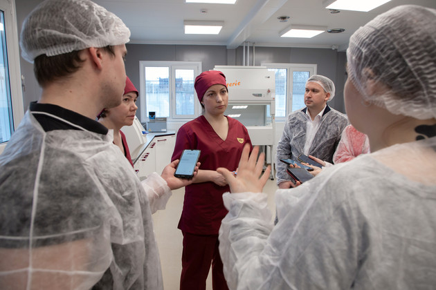 Журналистам дали возможность посмотреть на образцы под микроскопом. «Это споры клостридии в сырье, также есть кокки – они круглые. Все микроорганизмы, которые мы сейчас видим полностью убиты, обездвижены и не представляют никакой опасности», – обратила внимание Татьяна Гарданова.