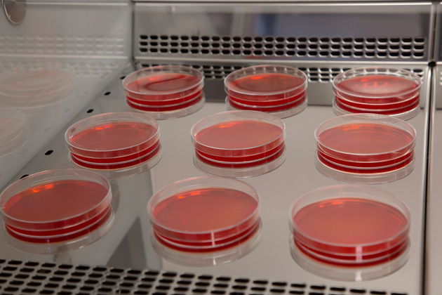 Блок «чистой» зоны состоит из нескольких комнат – средоварочная, стерилизационная и моечная, рядом размещена прачечная и хозблок. В первом помещении нам показали чашки Петри и пробирки со стерильными питательным средами, где затем будут культивировать микроорганизмы. После стерилизации их отправляют отправляют в заразную зону для посева.