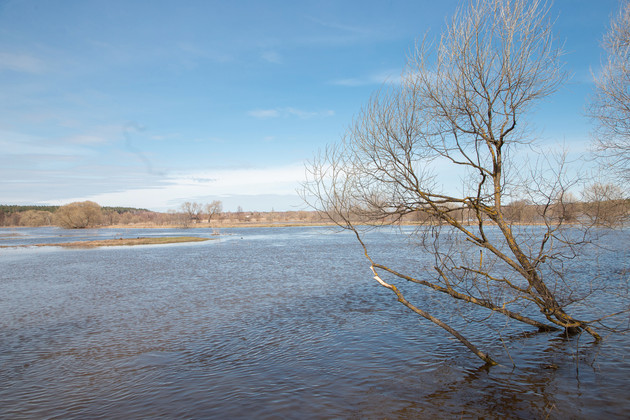 Нам показывают русло Судогды, где вода перелилась через его обычные пределы и пошла в пойму. А раз уж снег окончательно растаял, рост ее уровня должен прекратиться.