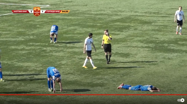 Вообще, эта футбольная «битва» на берегу Балтики отличалась удивительной щедростью судьи Александра Федотова на свистки, пенальти и желтые карточки. Десять предупреждений арбитр вынес игрокам: семь «горчичников» досталось «Балтике-БФУ» и три - торпедовцам. Именно из-за желтой карточки Александру Горбачеву еще в перерыве пришлось заменить Виктора Чувилова на Максима Батракова.