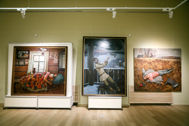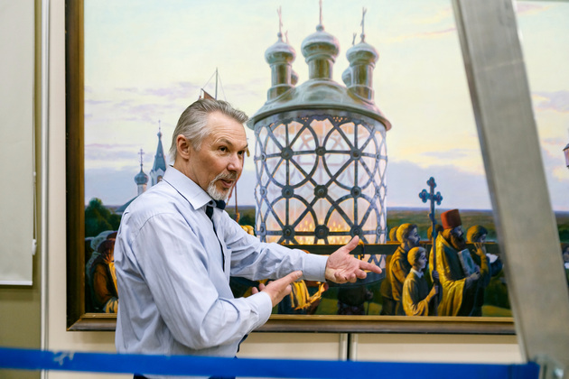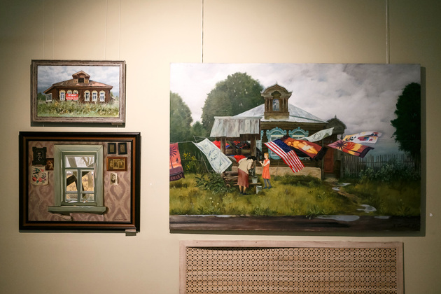 По словам самого художника, который провел корреспондентов «ВВ» по своей выставке накануне открытия, многие работы вдохновлены жизнью в родном Коврове. Там ему было рукой подать до любимых сел, деревень, природы.