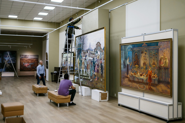 Художник расположил работы на выставке не по хронологии, а по настроению. Первый раздел можно назвать тревожно-набатным. Второй и центральный ‑ одухотворенно-молитвенным. И завершает вернисаж третий раздел ‑ жизнерадостный, полный яркости и оптимизма.