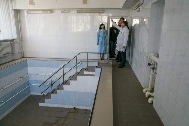Обустройство поликлиники еще продолжается – сейчас ремонтируется фасад. Закончить эти работы планируется летом. Кроме того, будут выделены средства на запуск бассейна, который уже есть в медучреждении.