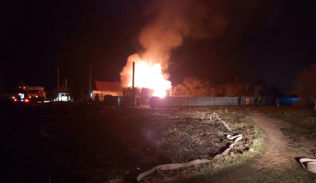 Как уточнили в пресс-службе МЧС, сигнал о возгорании служба спасения получила поздно. На момент прибытия бригады из восьми человек на месте наблюдалось горение дома по всей площади, также обрушилась кровля.