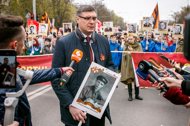 Александр Авдеев также пронёс в “Бессмертном полке” портрет своего деда - фельдъегеря Михаила Алексеевича Володина: