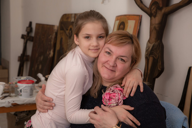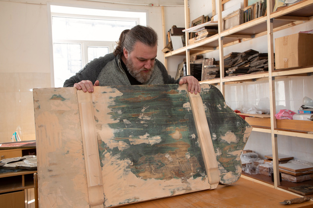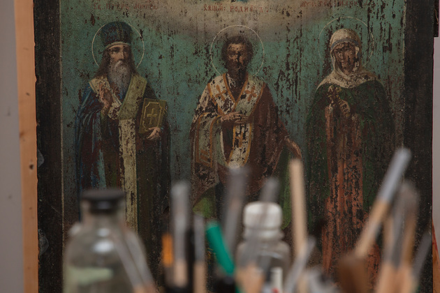 Отец Дмитрий занимается реставрацией икон, осенью его рукоположили и сейчас он служит дьяконом в храме Михаила Архангела в Добром селе. Он - потомственный художник. В прошлом году вместе с супругой по настоянию матушки Марии восстанавливал иконы женского монастыря села Санино Суздальского района. Говорит, что эти умения невозможно получить ни в одном учебном заведении».