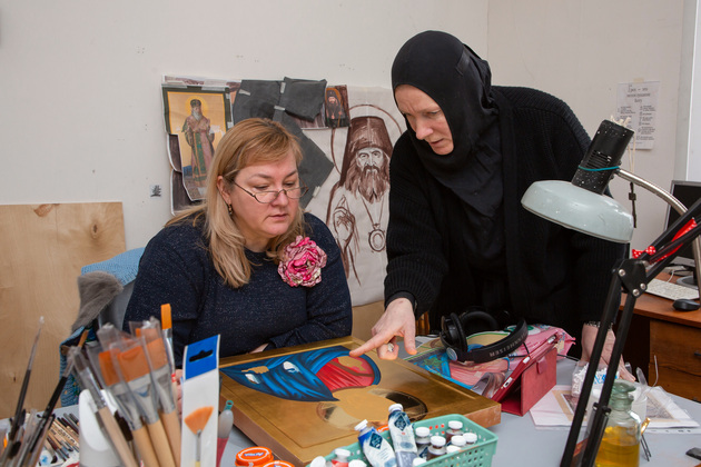 - Я вместе с другими монахинями Боголюбовского монастыря в 90-е годы проходила стажировку в иконописной школе Троице-Сергиевой Лавры, - вспоминает матушка Мария. – Смотрела, как всё организовано, сейчас хочу что-то оттуда перенести.