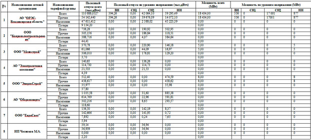 Полезный отпуск электрической энергии из электрических сетей сетевых организаций указан суммарно по точкам поставки, соответствующим зоне деятельности АО «Владимирские коммунальные системы» как гарантирующего поставщика и как независимой энергосбытовой организации.