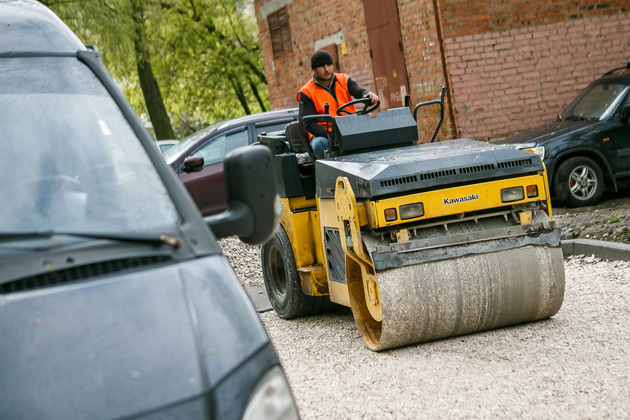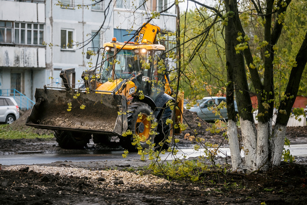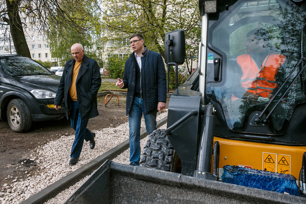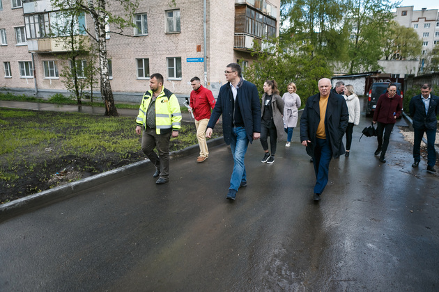 Во дворе дома № 45 по проспекту Ленина в разгаре благоустройство двора по нацпроекту «Формирование комфортной городской среды». Идет ремонт дорожного проезда и тротуара. Здесь Авдеев обратил особое внимание на обустройство парковочной зоны.