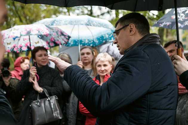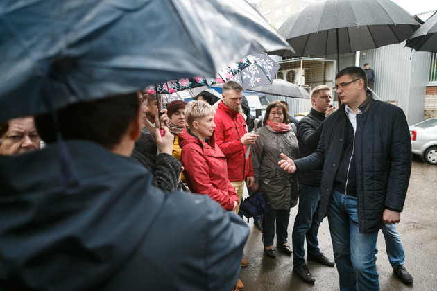 На улице Белоконской руководители области и города обсудили с собравшимися там жителями перспективы создания «рекреационно-спортивного кластера» в этом районе города.