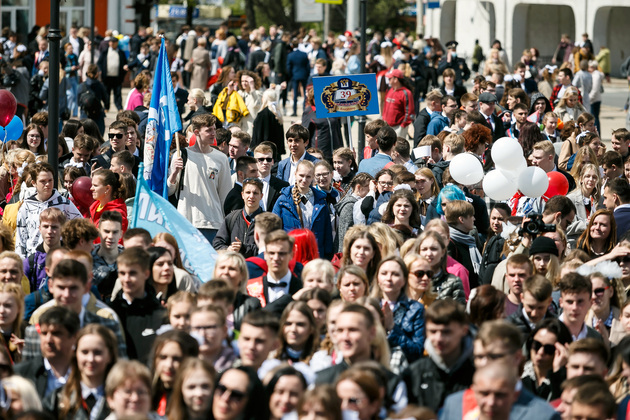 Сначала выпускники собрались на Театральной площади. Для того, чтобы ребятам и учителям было удобнее добираться до места проведения торжеств в их честь, город запустил специальные троллейбусные рейсы. На площади у драмтеатра выпускников ждали различные развлечения. Сами одиннадцатиклассники и их родители тоже могли продемонстрировать на сцене свои таланты. Около часа дня началось торжественное шествие школьных колонн к Соборной площади, где прошла праздничная церемония чествования выпускников.