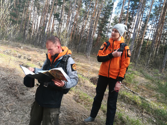 А самые интересные практики ночные поиски, куда курсанты уходят уже разбившись на лисы-двойки: с прочесами, работой на отклик с определением азимутов, откуда эти отклики прилетают... Все, кстати, близко к реальности: болота и буреломы настоящие, а роли условных потерявшихся исполняют статисты, для чего уходят в глухомань. Кстати, работа статиста на учебном поиске та еще задача: попробуйте несколько часов посидеть на месте в лесу без света фонаря и костра - при заморозках или, того хуже, бесконечном ливне, пока вас не найдут все до одной группы! А они могут очень долго ходить рядом. Но подать им сигнал категорически нельзя, найти статиста они должны сами.