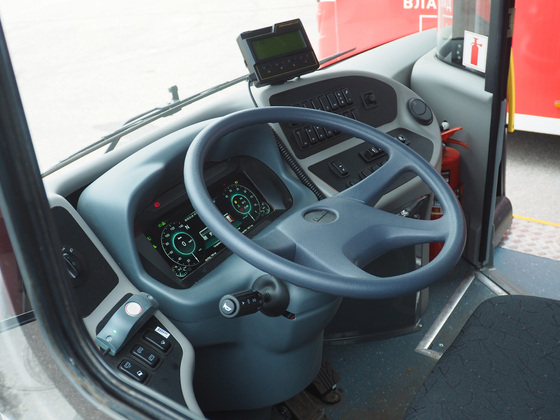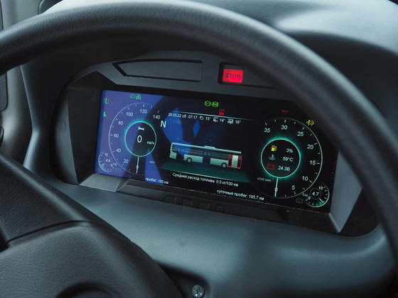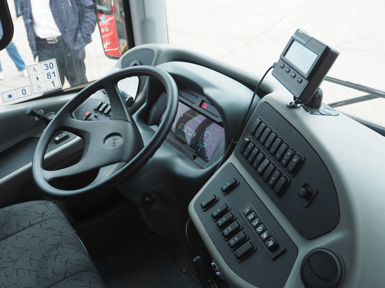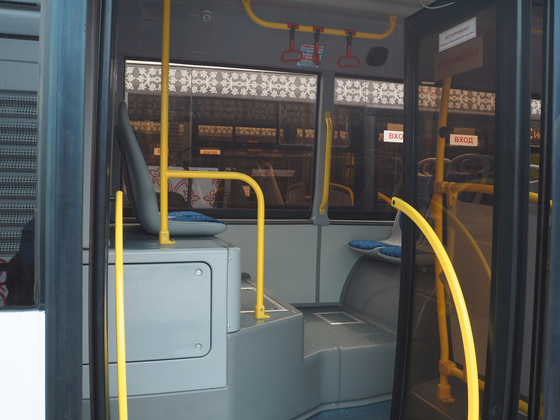 Новый транспорт оснащен современной электронной системой – при открытых дверях, например, автобус тронуться не сможет. Кроме того, специальный браслет в случае плохого самочувствия водителя будет подавать сигнал.
