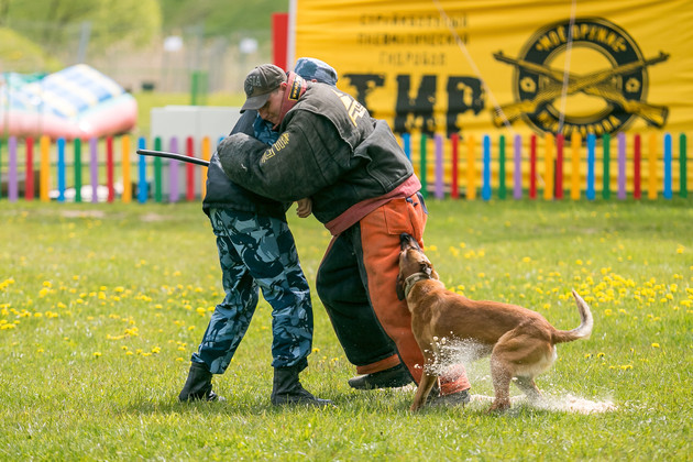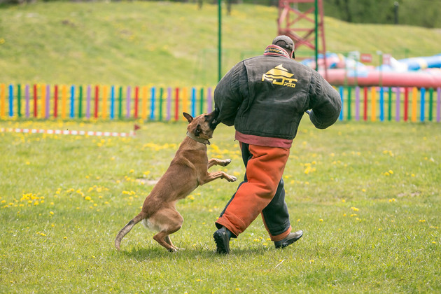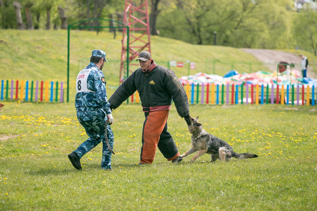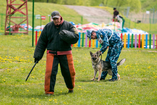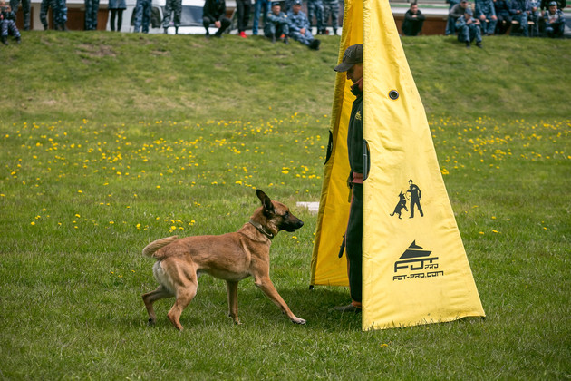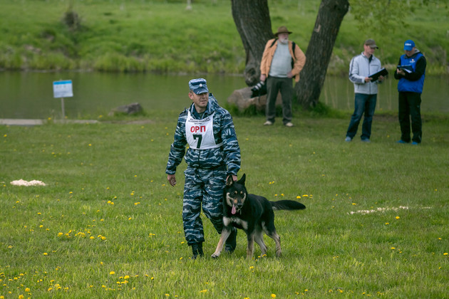 Кинологи при выполнении заданий подопечным не помогают - за это баллы снимают.
