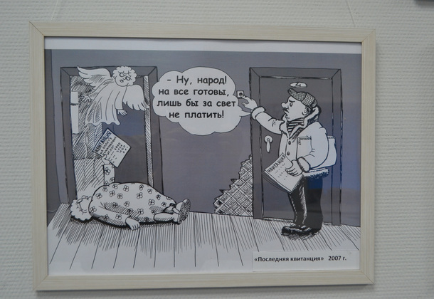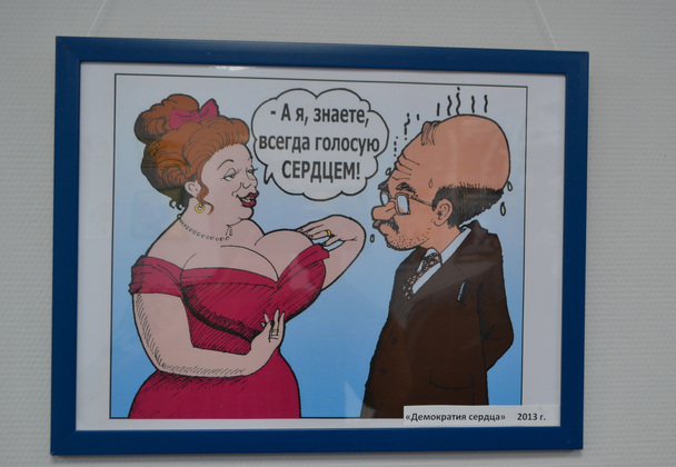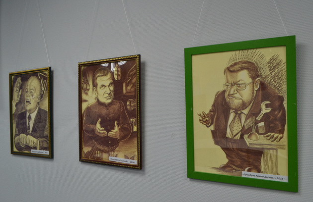 Это выставка ковровского журналиста стала остроумным творческим отражением реальных фактов нашей жизни за последние лет пятнадцать. Многие работы были иллюстрациями к статьям и фельетонам в газете. Этакий сатирический обзор новейшей истории города Коврова и Владимирской области.