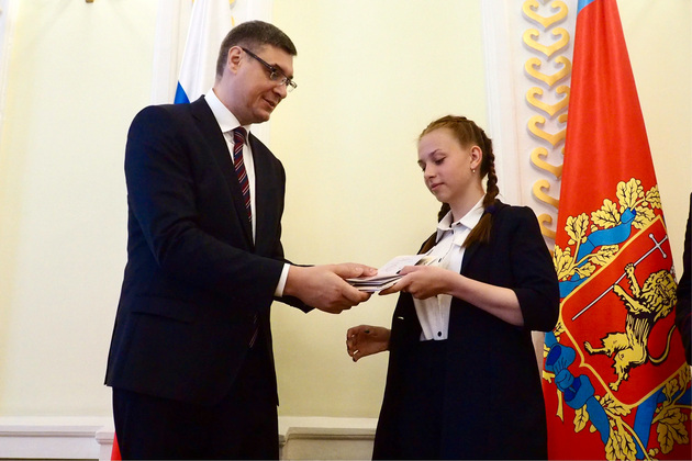 - Вместе с паспортом вы приобретаете дополнительные права и обязанности, - отметил в поздравлении председатель Законодательного Собрания области Владимир Киселев. – Вы сможете теперь работать, получать зарплату и даже открыть счет в банке. Пока работать можно не более 2,5 часов в день, а в каникулы – не более 4 часов в день…