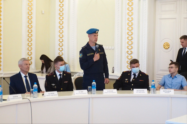 Виновников торжества также поздравили главный федеральный инспектор по Владимирской области Сергей Мамеев и врио начальника УМВД области Петр Бузин. От имени ветеранов-десантников области к ребятам обратился руководитель военно-патриотического клуба имени Героя России Д. Кожемякина, участник боевых действий на Северном Кавказе Юрий Карпов.