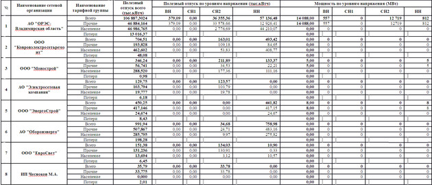 Полезный отпуск электрической энергии из электрических сетей сетевых организаций указан суммарно по точкам поставки, соответствующим зоне деятельности АО «Владимирские коммунальные системы» как гарантирующего поставщика и как независимой энергосбытовой организации.