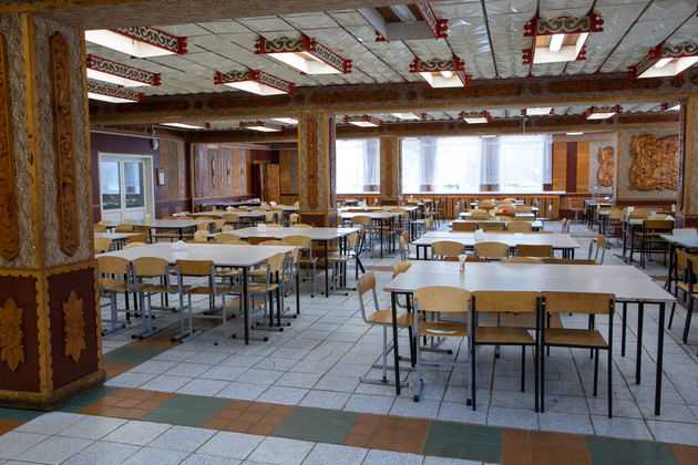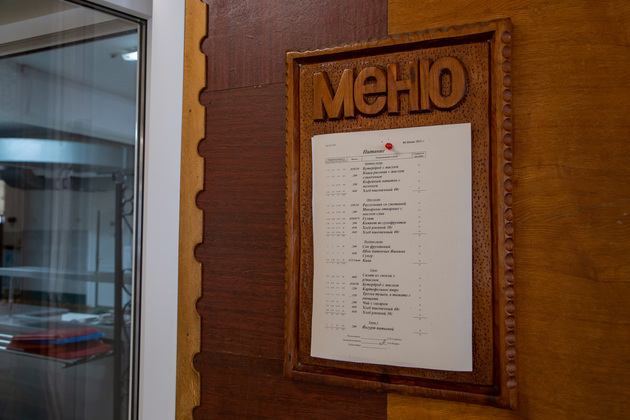 Столовая рассчитана на 260 мест, питание в лагере пятиразовое. Заглянули в меню: в списке каши, мясные блюда, рыба, овощи, фрукты.