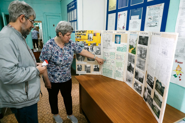 И все-таки по-настоящему приобщиться к истории одного из суворовских мест Владимирской земли можно именно здесь, в Фетинино: побродть под старыми липами и березами, постоять у надгробия праправнука Суворова Михаила Леонтьева. И - по старым фотографиям представить, как и где были части усадебного комплекса. Поговорить с современными жителями, которые делятся крупицами исторической памяти. А для нас экскурсию провели работники местного ДК - заведующая отелом филиала Марина Никитина и художественный руководитель Татьяна Малинина. Кстати, ДК остается главным центром сохранения памяти об усадьбе.