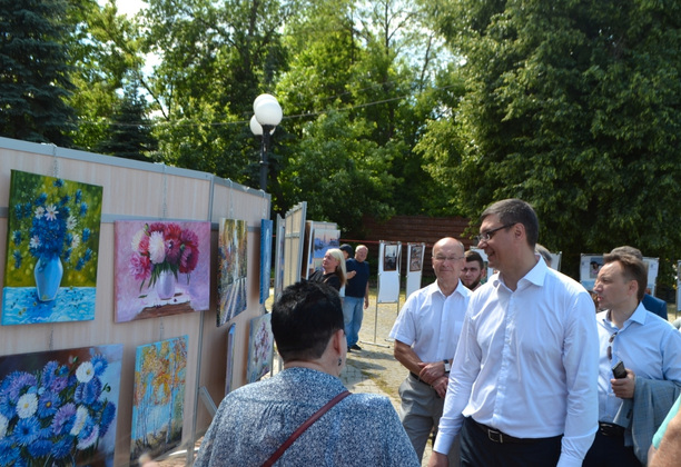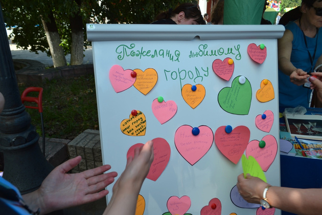 После торжественной части программы Александр Авдеев и другие почетные гости в сопровождении главы Гусь-Хрустального Алексея Соколова прошли по основным точкам праздника. Пообщались с творческими горожанами, посмотрели уличные выставки, концерт. Оставили автографы с пожеланиями на разноцветных бумажных сердечках.
