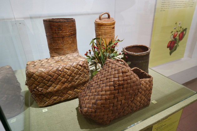 “В 2015 году у нас уже была выставка „Удивительная береста“. На ней демонстрировались современные произведения из березовой коры. А тут у нас представлен более широкий спектр изделий из природных материалов. Это бытовавшие в крестьянской среде предметы из лыка, бересты, корня сосны, из лозы, соломы – все то, что служило тарой в деревнях Владимирской области. Многие предметы достаточно старые – середины XIX века. Таких вещей осталось очень мало, и в этом уникальность нашей выставки”, – рассказал Денис Дуденков, заведующий сектором природы.