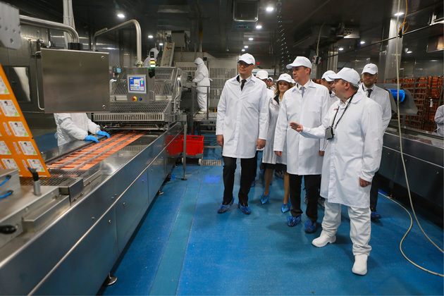 В начале поездки делегация побывала на колбасном производстве во Владимире. Специалисты инновационной лаборатории мясоперерабатывающего завода разработали продукты на растительной основе, главный компонент – пшеница. Их выпуск на рынок планируется в четвертом квартале 2022 года, отметила представитель компании. Сейчас на предприятии для изготовления колбасных изделий и замороженных полуфабрикатов стопроцентно используют российское сырье. В этом году в планах выпустить более 400 тысяч тонн готовой продукции.