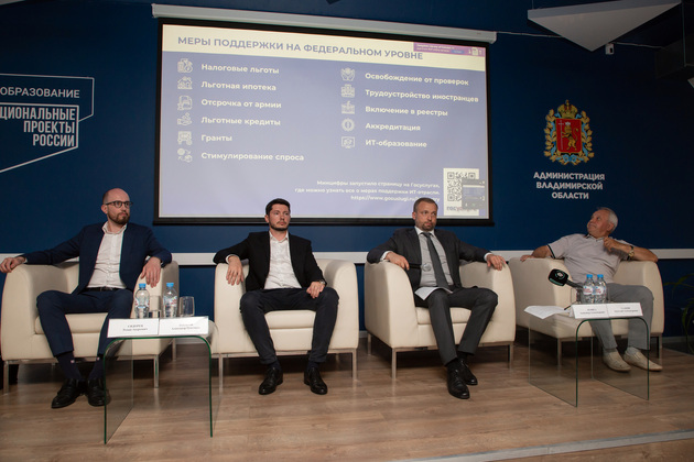 Какую поддержку может предложить область, рассказал директор департамента предпринимательства Сергей Сидорин. Во Владимирской области, по его словам, введены следующие меры: налоговые каникулы до 2024 года для впервые зарегистрировавшихся предпринимателей, пониженная налоговая ставка, займы до 5 млн рублей от МФО, вознаграждения за поручительство по кредитованию в банках до 0,5%, гранты до 500 тысяч рублей для молодых предпринимателей и другие. Полный список льгот можно узнать на сайте мойбизнес-33.рф.