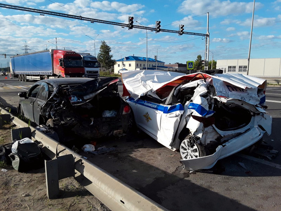 Как сообщили в пресс-службе УМВД России по Владимирской области, после столкновения автомобиль ДПС врезался в другую легковушку. В результате аварии пострадали двое пассажиров легкового автомобиля «Хонда», водитель легкового автомобиля «Опель» и двое инспекторов ДПС ГИБДД.