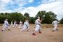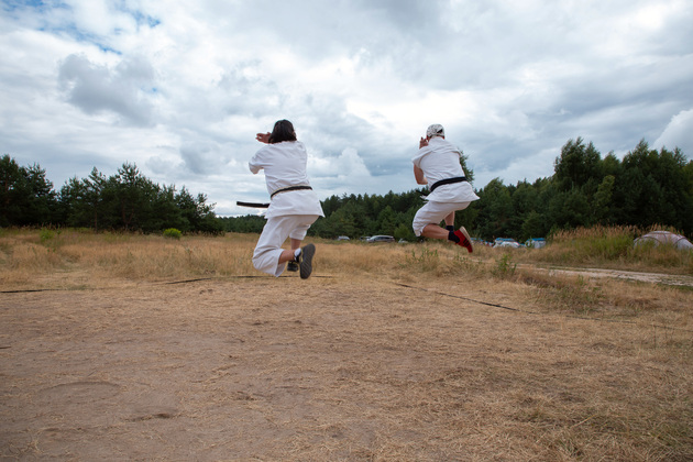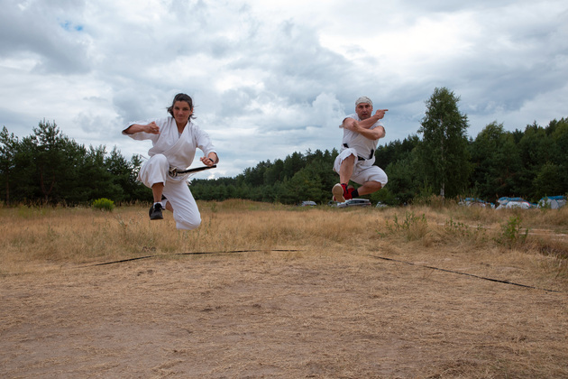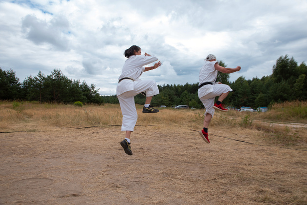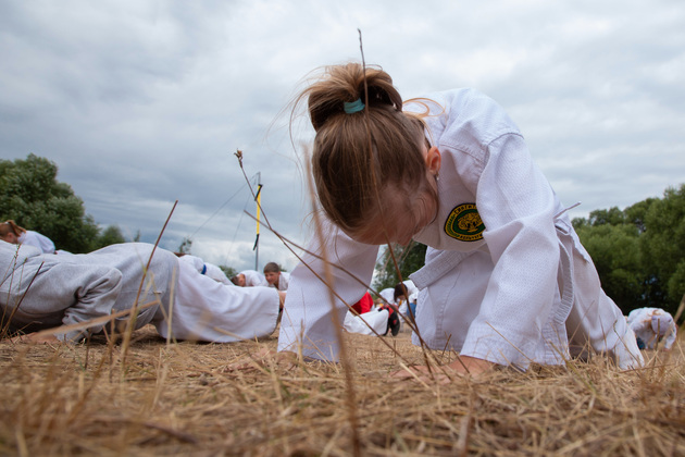 Четкие движения, прыжки с разворотами, точность удара, освобождение от захвата. Каратэ – философия, помогающая постичь гармонию природы, говорят ребята. Она учит целеустремленности, выносливости. А в стиле Шотокан одновременно коварство и изящество тигров! Ведь эти животные подкрадываются грациозно и бесшумно, настигая добычу и разя одним ударом наповал. Так и происходящее во время тренировки на лесной полянке завораживает. Александр Кузьмин и Ольга Городкова на практике показывают отшлифованную технику боевого искусства. Тигры – да и только! Дети по команде тренеров синхронно выполняют движения и тонкими голосами громко выкрикивают на японском языке боевые призывы. Кто в кроссовках, кто босиком.
