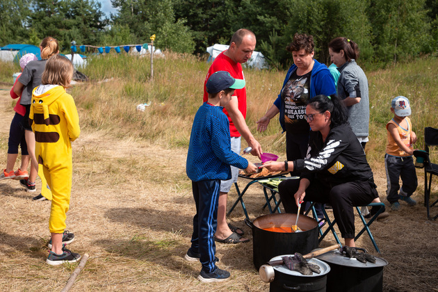 - В первую смену у нас было 70 детей, сейчас – 40, - рассказывает Александр Кузьмин. - Вместе с ними - мамы и папы. У нас особый подход – считаем, с родителями как раз и есть настоящий палаточный семейный лагерь. Вместе с детьми они могут жить здесь и помогать с организацией быта и досуга. Это приветствуется!