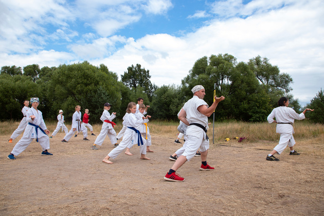 Распорядок дня в лагере такой. Подъем в восемь утра. Умывание и утренний кросс вокруг озера – заряд бодрости и энергии. После завтрака – мытье посуды и наведение порядка. В 11.30 - основная тренировка по каратэ. В 13.30 - обед, тихий час и подготовка творческих дел.