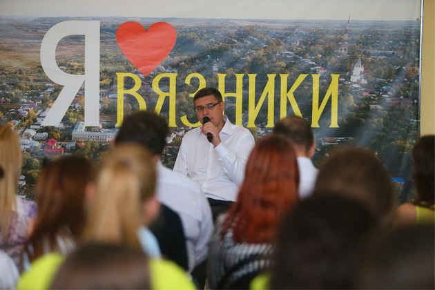 Еще перед открытием форума Александр Авдеев встретился с волонтерами в «разговоре на равных» в Культурно-досуговом комплексе Вязниковского района.