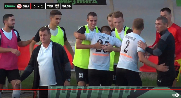 Торпедовский натиск нарастал весь первый тайм. Но мяч долго не шел в ворота «Знамени Труда», которое тренирует теперь известный специалист Валерий Есипов. То не засчитали гол Краснова из-за офсайда, то мячи летели выше ворот или во вратаря.