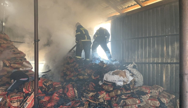 Потушить огонь удалось на площади 20 квадратных метров с помощью 4 единиц техники. Сгорели только мешки с углем, погибших и пострадавших людей нет.