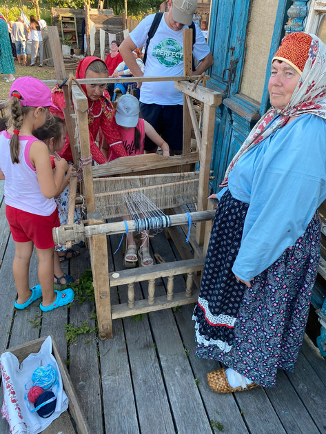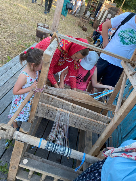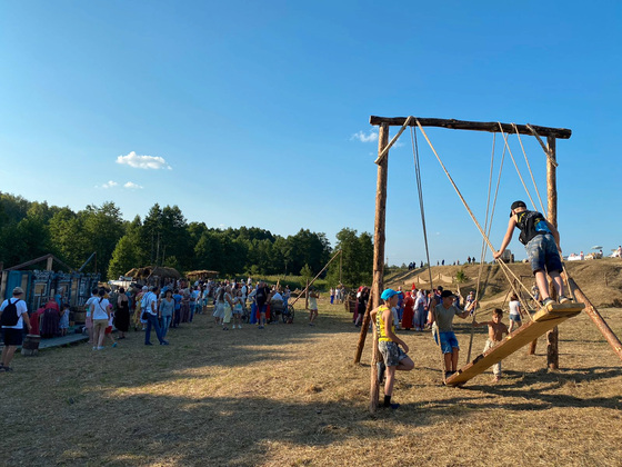 Покататься на качелях после основного представления также могли все желающие из гостей, как и поучаствовать, например, в создании половичков на древнем станке и поучиться обращаться с лозой.