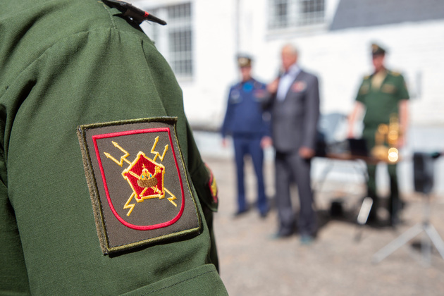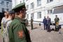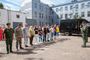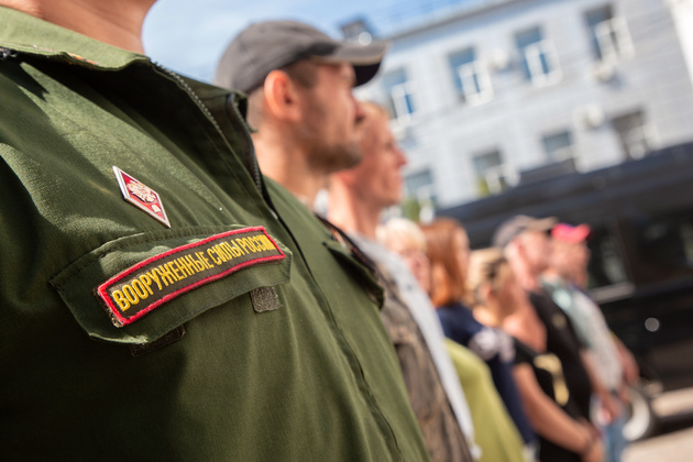 Шеренга добровольцев выстроилась на территории облвоенкомата. Их напутствовали военный комиссар Владимирской области полковник Юрий Гусаров, другие работники военкомата.