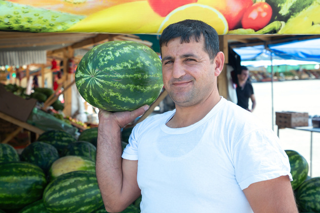 - Это наш секрет, - шутит торговец Агиль Нифталиев. - Я из Азербайджана, в моем районе растут самые хорошие арбузы в стране. Детство провел в деревне, вырос в арбузах. «Сканирую» их одним взглядом.