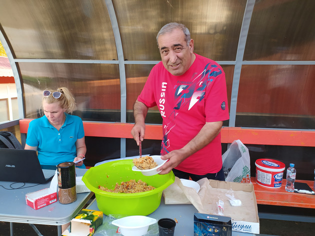 На обед общественная организация «Месопотамия» приготовила изумительный плов на костре, который молодые ребята «наворачивали» с аппетитом. И с новыми силами продолжали показывать свою спортивную подготовку.