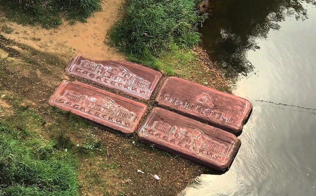 Полотном для художника стали старые ржавые плиты. Теперь они превратились в плитки известного всем шоколада. Правда пользователям социальных сетей плиты больше напомнили тульские пряники или шоколадное печенье.