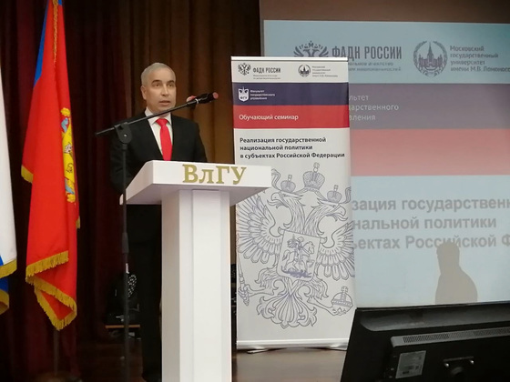 Олег Серегин поздравил участников семинара и с созданием во Владимире Дома Дружбы народов, и с тем, что в этом году Владимирская область стала одним из самых активных участников конкурса «Лучшие муниципальные практики» в номинации по межнациональным отношениям.