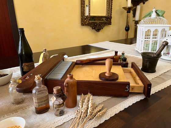 Специально для этих целей музей заказал пилюльную машину. Это работающий макет приспособления образца конца XIX - начала XX веков, который, по просьбе руководства музея, воссоздали владимирские мастера по чертежам былых лет.