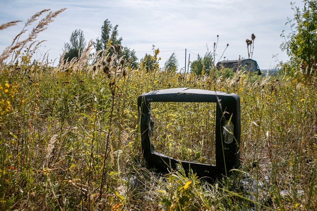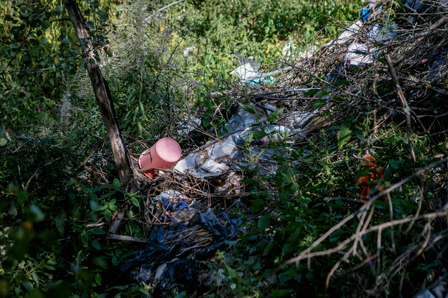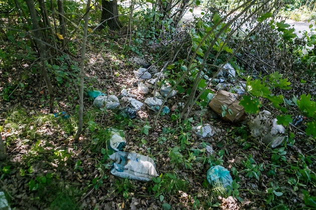 Поворачиваем в сторону садов - неподалеку от строящегося логистического центра есть небольшой лес. И там мы сразу попадаем на целую кучу пакетов с мусором. Похоже, что пикникеры за собой все собрали, но вывезти — не царское дело. Проходим еще несколько шагов — натыкаемся на старый диван. Рядом – пластиковые отходы. Уборка здесь уже отобрала бы несколько часов, плюс нужна специальная техника для вывоза мебели.